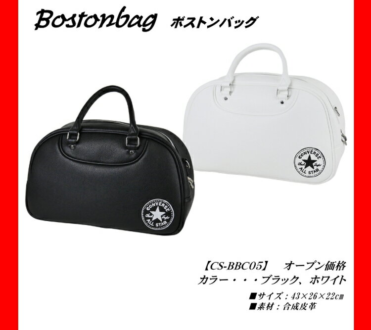 コンバース ボストンバッグ ●品番…CS-BBC05 ●カラー…ブラック,ホワイト ●サイズ…43X26X22センチ ●素材…合成皮革 おしゃれ お洒落 ファッション ゴルフ バッグ バック