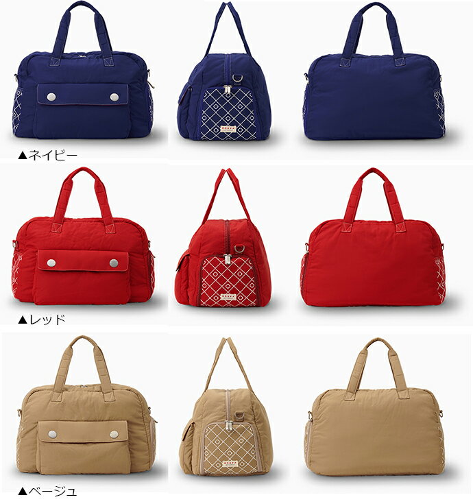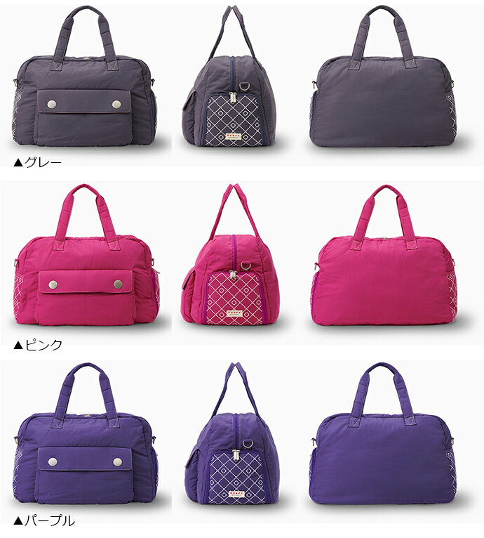 商品詳細 Boston Bag OV0719 素材 :ポリエステル サイズ:45×25×34 cm カラー:レッド、ネイビー、ベージュ、グレー、ピンク、パープル その他: ・小物をすぐに取り出せる外ポケット ・ファスナー付き内ポケット1個 ・シューズ収納ポケット(デオドラントネーム®(消臭・除菌効果)付) ・ショルダーベルト付