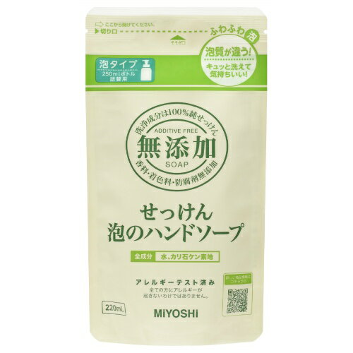 【ミヨシ/送料無料】 無添加せっけん泡のハンドソープ詰替用220ml (単価286円)×24袋 1ケース